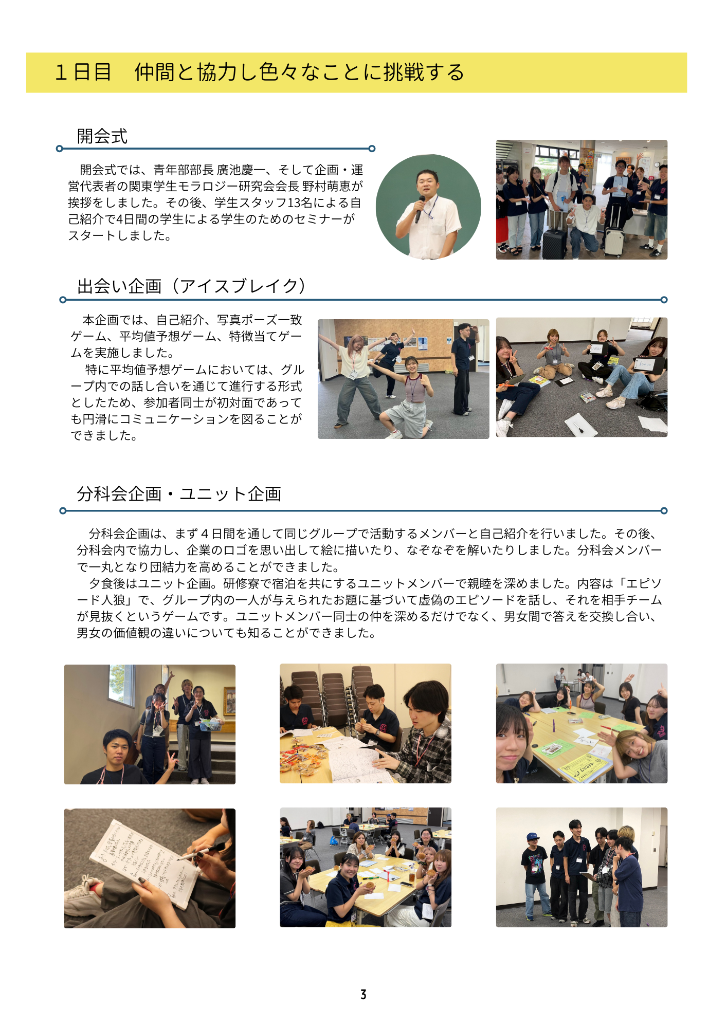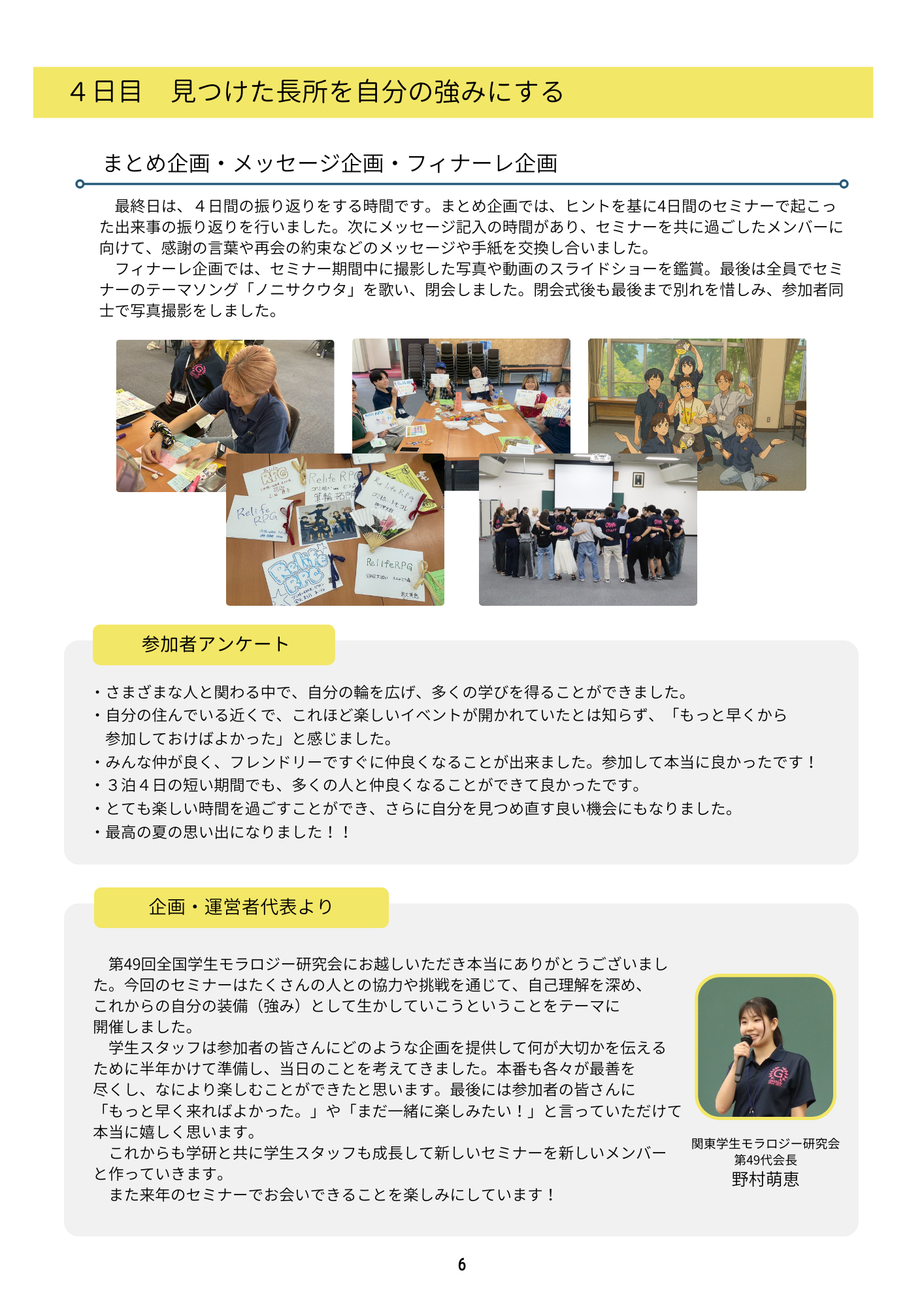 第49回全国学生モラロジー研究会は昨年と同様に3泊4日で開催されます。